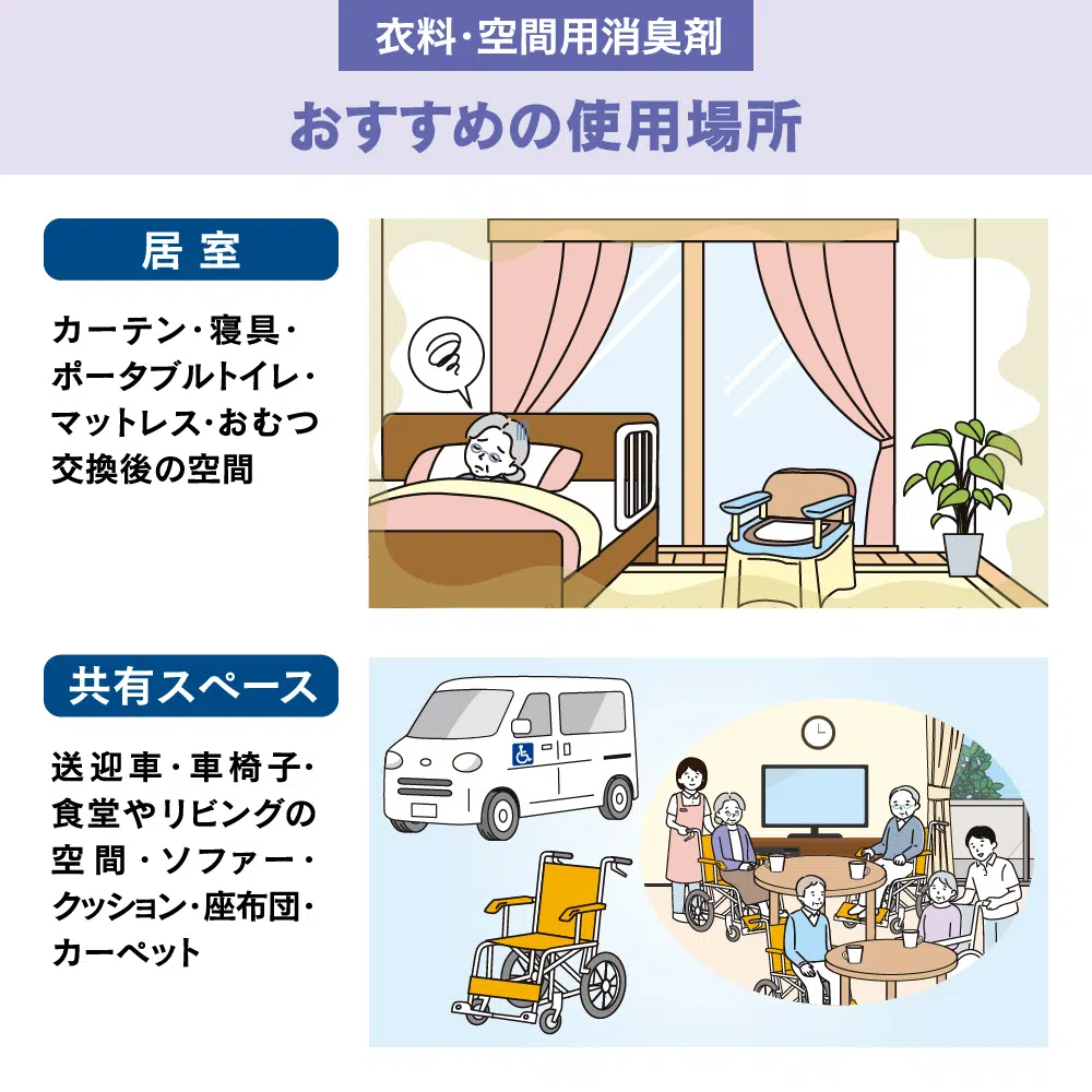 トイレ使用後、おむつ交換時など、ニオイが気になる空間にも。